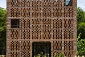 - Prix de la catégorie “Working together” : Studio Terra Cotta à Dien Phuong, au Vietnam (Architecte : Tropical Space. Type : brique de parement) : La perforation de la façade de ce véritable cube de briques, réalisé au pied d’une rivière, permet au vent de s’infiltrer et de refroidir naturellement l’intérieur.