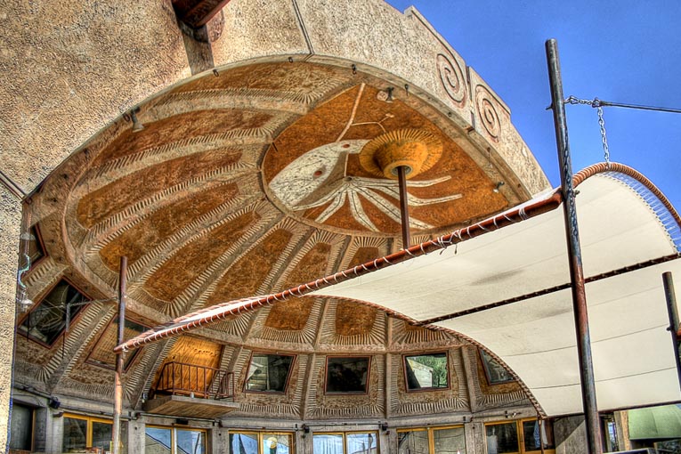 Adepte de l’Arcologie (contraction d’architecture et d’écologie), l’architecte voulait montrer qu’il était possible de développer un projet urbain unique. Tout en respectant l’environnement. Thème peu en vogue il y a 50 ans – en dehors peut-être du mouvement hippie -, mais qui trouve tout son sens à notre époque. Ses idées semblent aussi logiques qu’attrayantes… Il s’agit bien d’un “laboratoire urbain”, comme l’annonce le panneau de bienvenue aux portes d’Arcosanti. Dans cette ville idéale auto-suffisante, les habitants n’ont plus besoin de voitures, la notion même de route n’a plus aucun sens. Les espaces de vie et de travail sont indistincts. Fini aussi les ampoules le jour, l’air conditionné l’été, même au beau milieu du désert ! L’ensemble forme un drôle de hameau ramassé, couvert d’oliviers et de cyprès, comme un peu d’Italie que l’architecte aurait semé çà et là. Un zeste loufoque.