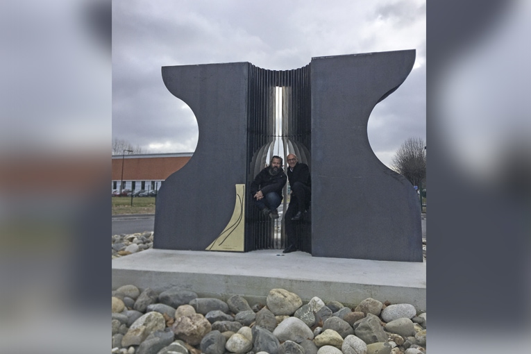 A l’occasion de la réalisation d’un rond-point sur un carrefour, boulevard Pierre Renaudet, juste en face de l’entrée de l’arsenal et de l’Atelier 411, Cyril Renou a fait don à Tarbes d’une sculpture monumentale en acier, baptisée “La femme”. Haute de 3 m, cette œuvre est composée de 32 lames en acier auto-patinable (Indatem, ArcelorMittal) de 4 mm d’épaisseur. « Beaucoup de lames pour beaucoup de femmes », explique Cyril Renou. Ces lames de 3 000 x 1 500 mm ont été découpées dans l’Atelier 411 sur un banc de découpe plasma. « Nous voulions faire savoir qu’un métallier pouvait être aussi sculpteur à ses heures. D’ailleurs, je dessine depuis 20 ans. Nous voulions mettre en avant notre côté artistique. Je voulais aussi promouvoir l’art auprès de tous. »
