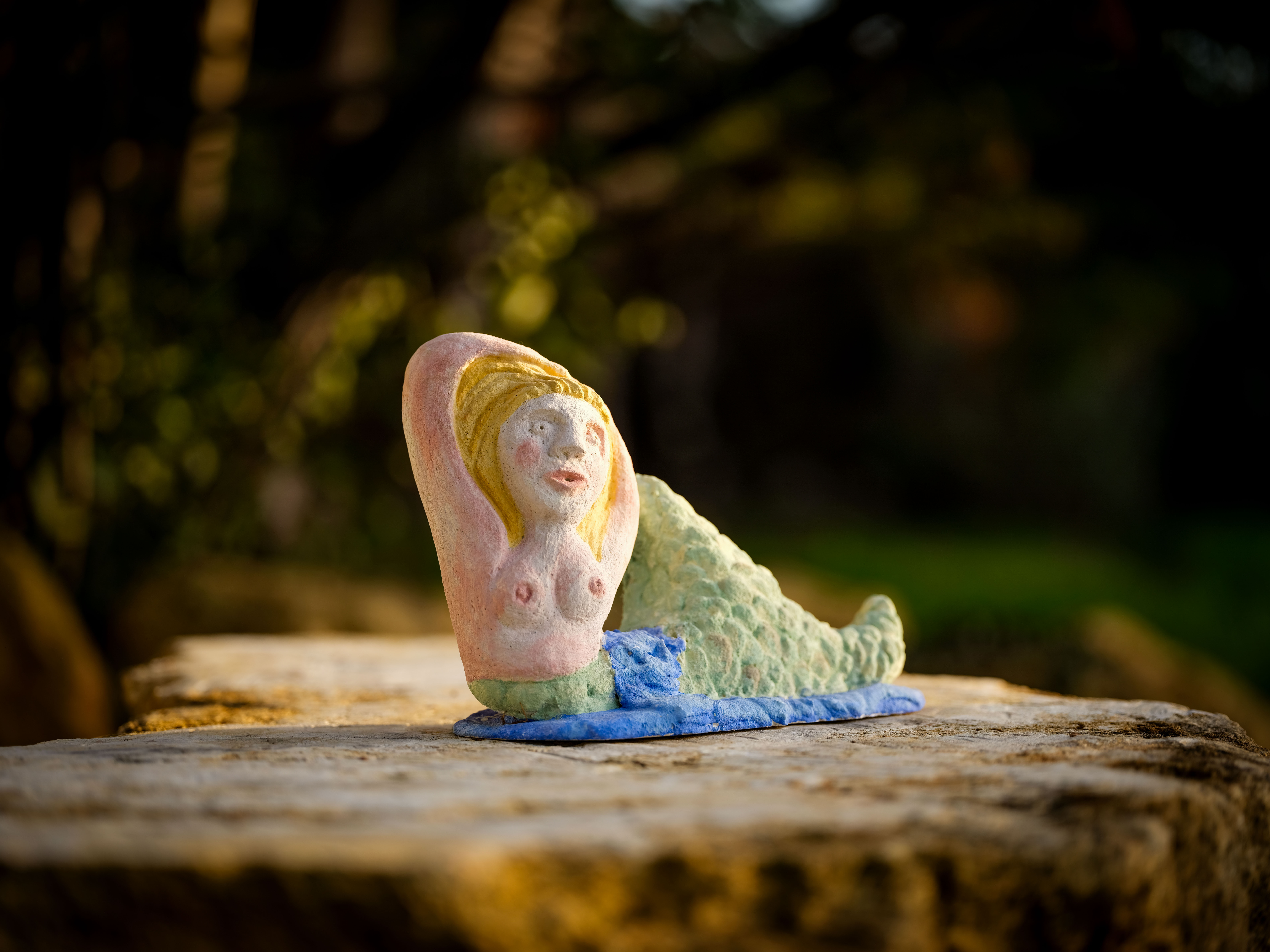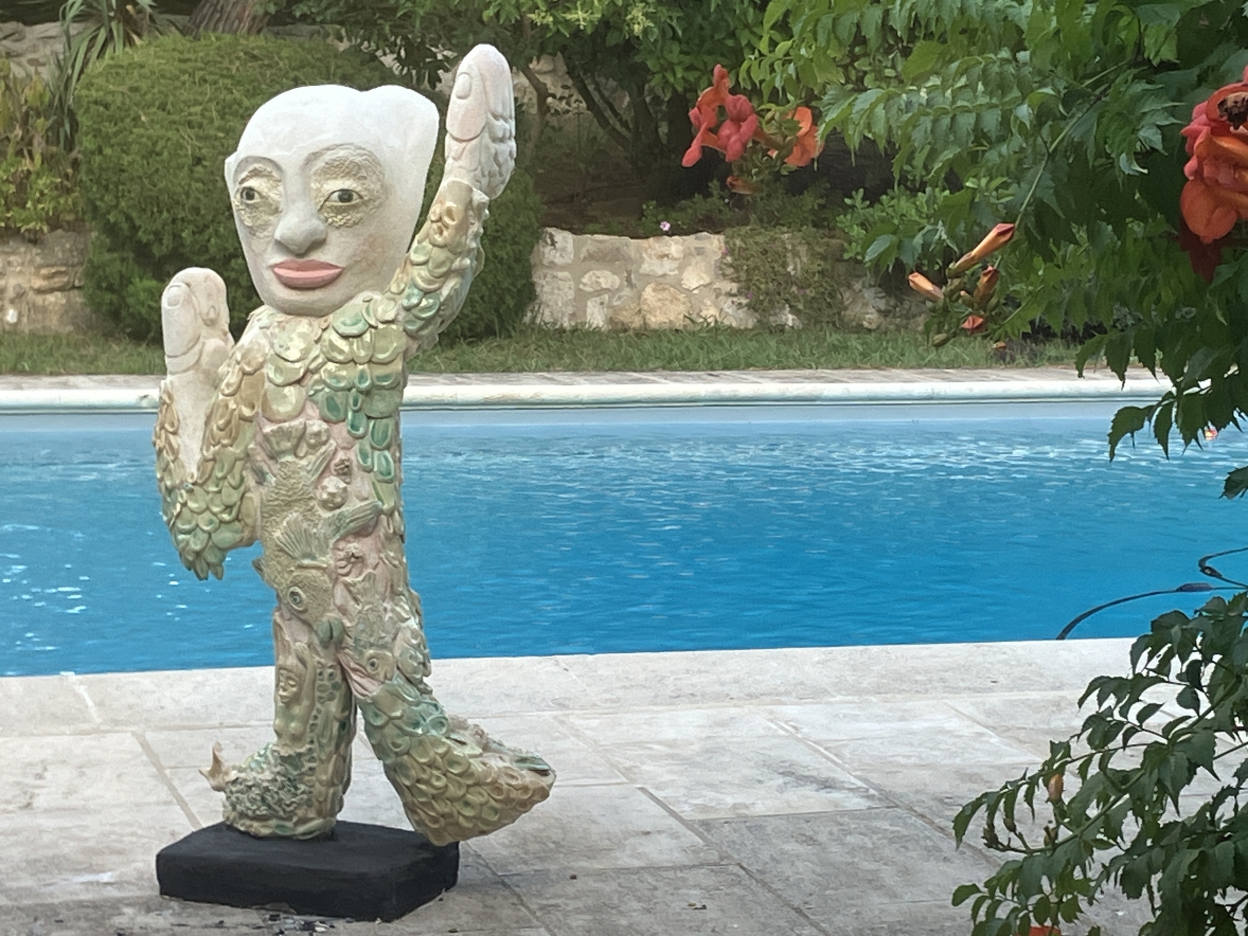 On pourrait qualifier d’art naïf l’univers de l’artiste Aude Ambroggi. Depuis les Alpilles, elle “concocte” des sculptures en béton et céramiques colorées, aux formes dézinguées. Le tout, avec un doux parfum d’innocence.