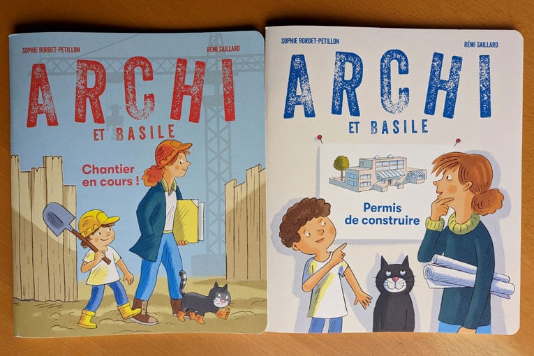 Sophie Bordet-Petillon et Rémi Saillard, les auteurs des bandes dessinées pour enfants : “Permis de construire” et “Chantier en cours”, nous emmènent de manière ludique dans le monde de l’architecture. Ces deux ouvrages encouragent les jeunes lecteurs à explorer les aventures de Basile, jeune garçon curieux, et Archi, son chat intrépide et débrouillard.