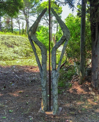 - Des sculptures de Bertrand Pigeon, on ne retient que des formes humaines longilignes quasi-abstraites, indéchiffrables. Ici en béton patiné, “Le Feu” s’élance vers le spectateur.