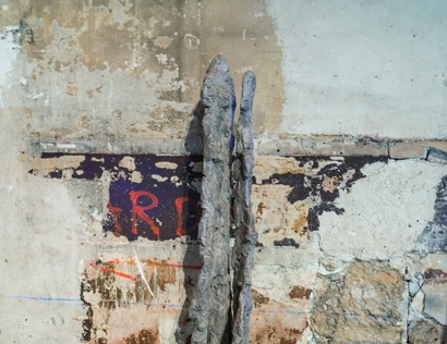 Peaux plissées, gonflées, tordues, formes déformées, travaillées, modelées… Bertrand Pigeon utilise le béton, qui devient sous ses doigts matière vivante. Les formes de ses sculptures sont en mouvement, elles s’animent, ont des postures particulières. Seul, le corps est représenté : courbes, attitudes les plus intimes, qui ont le plus de sens. Son inspiration vient de ce qui l’entoure et de son expérience intérieure. Bertrand Pigeon transforme le béton, communément figé et structurel, en un matériau mouvant et de déséquilibre. Son travail est une véritable lutte contre la vitesse de prise de ce matériau et celle de la chute des corps, la pesanteur qui leste toute figure. « La sculpture est contraignante de par sa mise en œuvre. L’esprit est censé guider la main, mais ici c’est le contraire. Il y a une interaction entre la prise rapide du matériau et ce qui en résulte », explique Bertrand Pigeon. En effet, ces contraintes mécaniques font interagir avec la créativité du sculpteur. L’utilisation du béton magnifie son travail. « Ce matériau est résolument contemporain. Il me permet d’ancrer mon acte créatif dans le présent. » Et viennent les “Empreintes” tirées de ses sculptures, qui allient ciment tenu avec un liant et collé sur tissu. Elles ne prennent que les arêtes de ses créations, pas leurs volumes et interrogent sur la mémoire, celle du corps.
