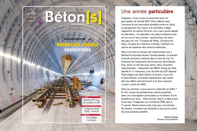Entre travaux souterrains, voyages à Dakar ou en Belgique, découverte de l’offre des additions pour bétons et des coffrages sur mesure, le sommaire de Béton[s] le Magazine n° 98 est, une nouvelle fois, très riche.