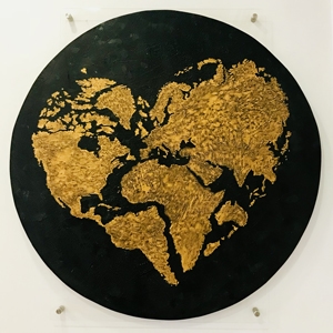 Eric André est un grand voyageur. Comme Arthur Rimbaud, il est de partout et de nulle part à la fois. Toujours sur le départ. Et quoi de mieux qu’une carte ou un atlas pour préparer son voyage ? L’idée lui est ainsi venue de réaliser ces supports et le béton s’est invité tout naturellement. A l’instar de son Atlas cœur, sorte de Pangée réinventée…
