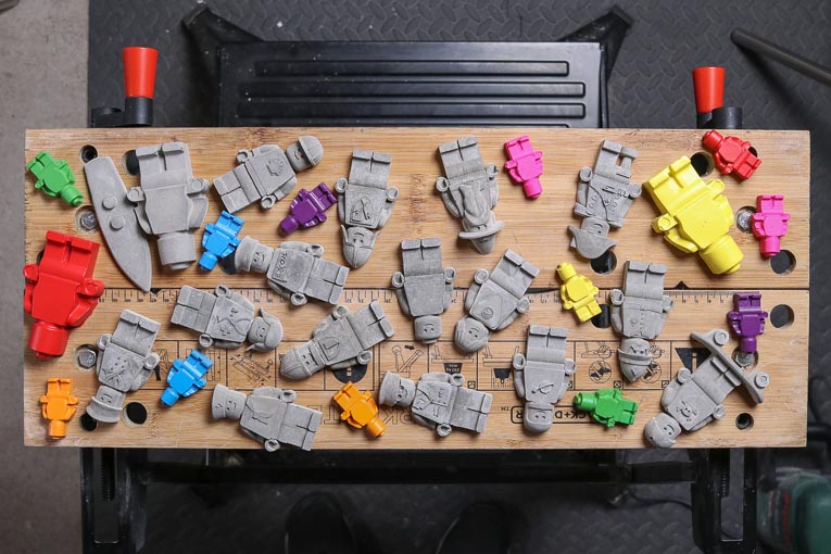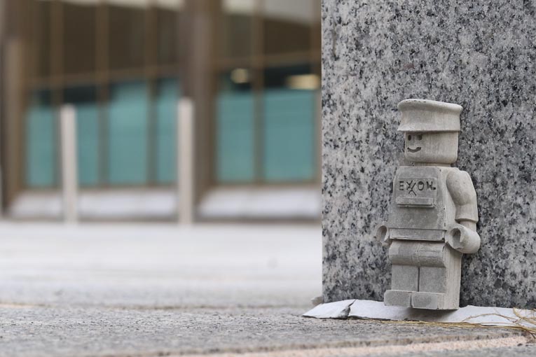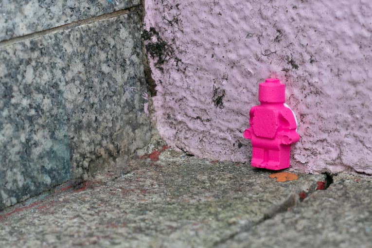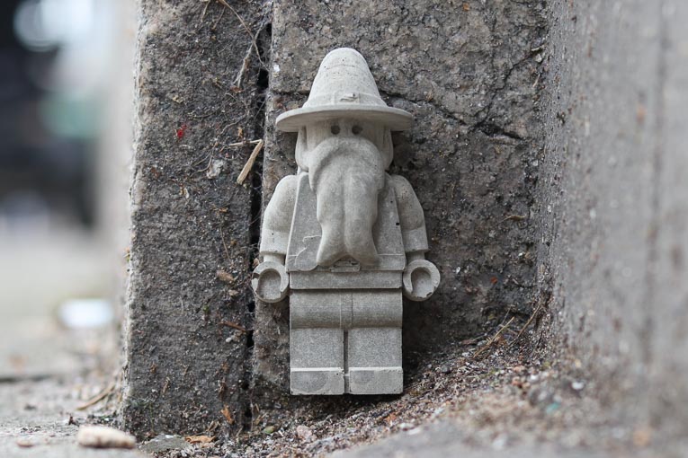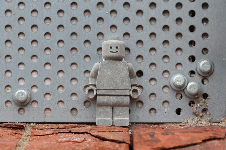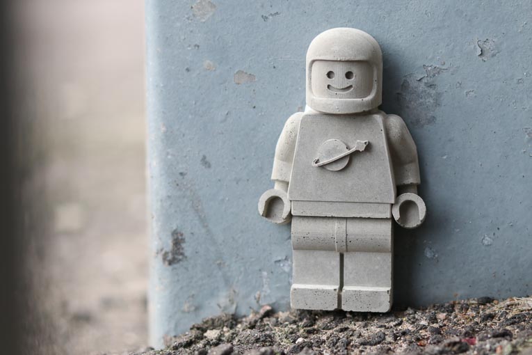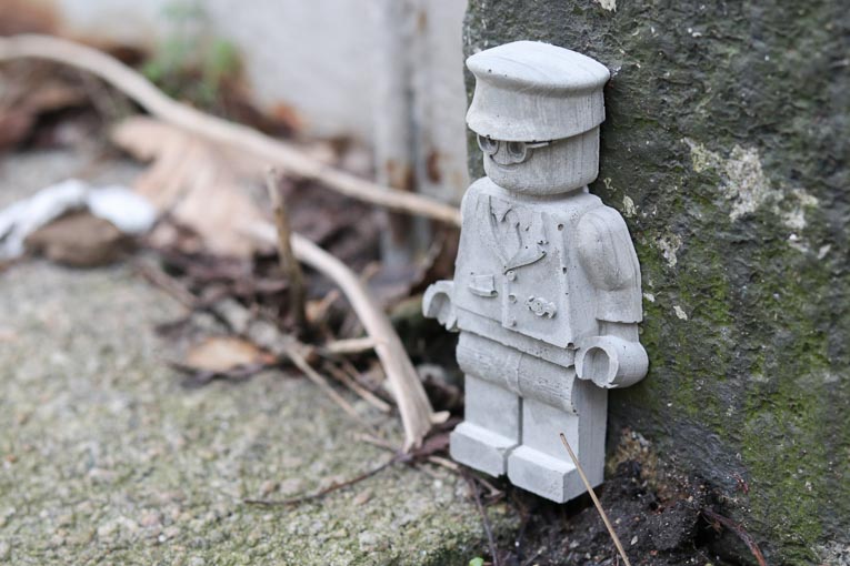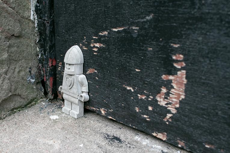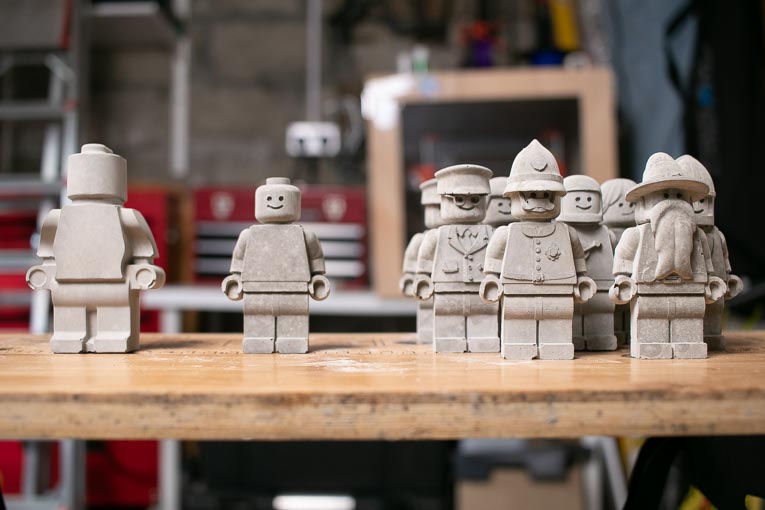 Pour créer ces figurines, The Sketchy Maker a dû réaliser un modèle sur son ordinateur, l’imprimer en 3D, puis fabriquer un moule. Et enfin, couler le béton. « Honnêtement, je n’y connais pas grand-chose en béton. Ce n’est pas quelque chose que j’avais beaucoup utilisé avant ce projet. J’ai opté pour un mélange d’une quantité d’eau, deux de ciment et trois de sable. J’ai eu du mal à trouver des informations sur la bonne formulation. J’ai commencé aussi à expérimenter le mélange, avec des plastifiants et des fibres. Tout cela est un processus d’apprentissage. J’ai même confectionné des moules en silicone », sourit l’artiste. Et de poursuivre : « J’étais plutôt content du résultat, puis j’ai compris que je pouvais réaliser un tas de figures différentes. Mon Lego préféré est l’astronaute classique, c’est celui que j’ai réalisé en premier. Comme il avait l’air bien, j’ai ensuite continué et j’ai réalisé une fournée supplémentaire. J’ai dû m’arrêter, car il y avait tellement… » Une autre façon de découvrir sa ville, par le biais de l’art, et surtout des Lego qui, même en béton, réveillent toujours notre âme d’enfant.