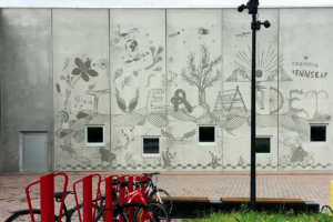 Grâce à une fresque au décor végétal signée Julien Colombier produite par Quai 36, Bouygues Bâtiment Ile-de-France et Nexity...