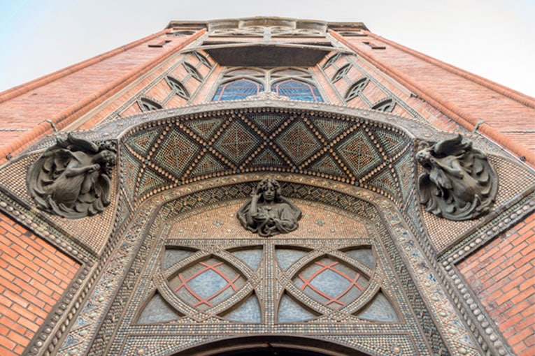 C’est sur la butte Montmartre que le ciment armé apparaît pour la première fois au grand jour dans l’art sacré. Cette première église, revêtue de briques et de céramiques, est influencée par le style Art Nouveau.
