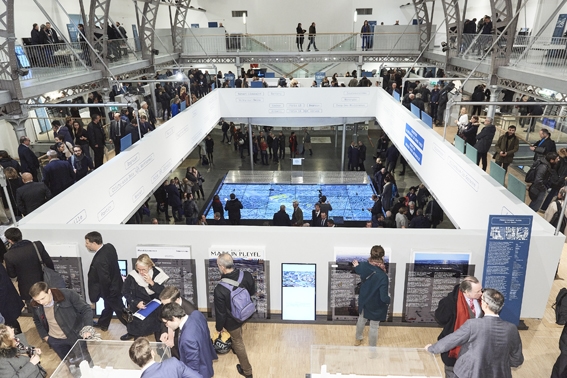 Au Pavillon de l’Arsenal, exposition consacrée aux 153 projets urbains innovants, dans le cadre “Inventons la Métropole du Grand Paris”. [©MGP]
