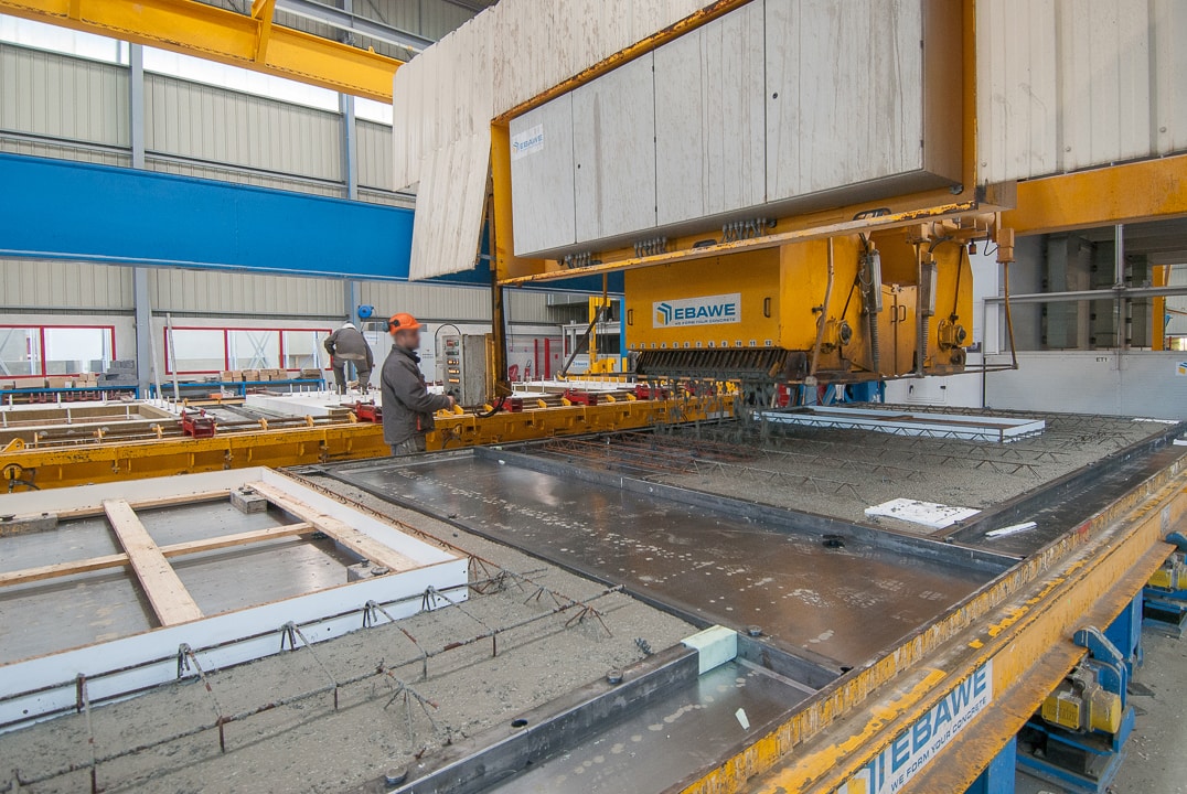 Ligne de production des murs à coffrage intégré et isolants de Jousselin Préfabrication, industriel du béton, aujourd’hui intégré au groupe breton Guillerm. [©ACPresse]