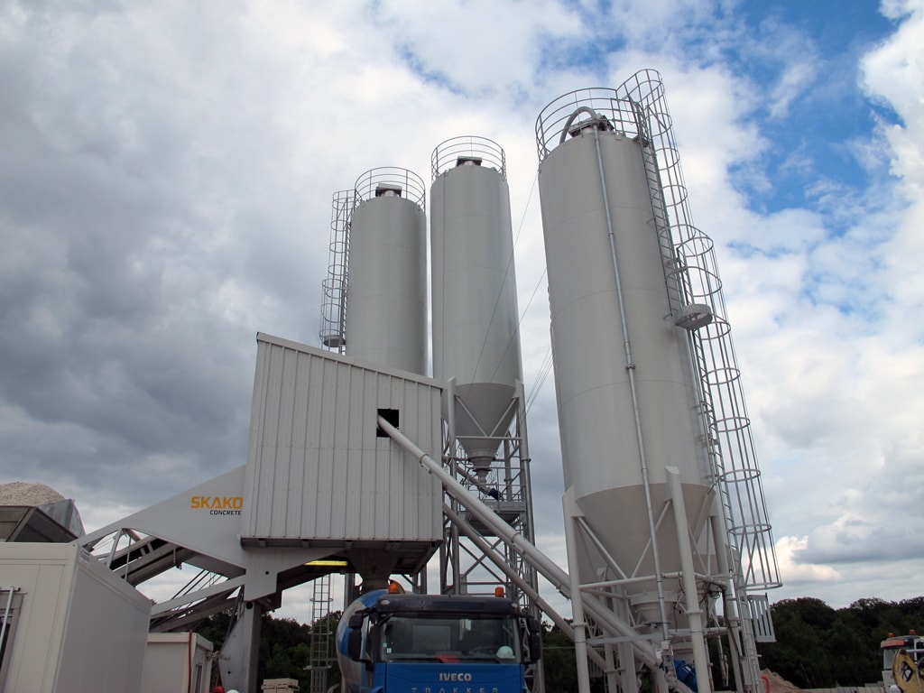- Skako Concrete a installé sur place une centrale mobile Mob, dotée d’un malaxeur de 1,25 m3, utilisée à une capacité de 35 m3/h, additionnée de 5 silos. Cette centrale a été modifiée pour les besoins du chantier pour permettre de réaliser la recomposition granulaire nécessaire à la formulation des bétons les plus techniques.