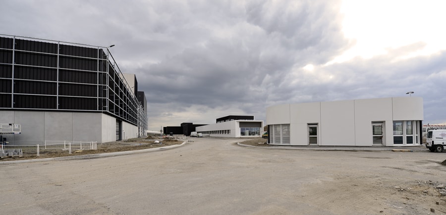 - Le bâtiment d’exploitation regroupe les administrations, le centre de commande de l’usine et le laboratoire d’essai et de recherche. Pour son habillage, il privilégie le béton dont les éléments ont été préfabriqués par l’entreprise Jousselin.
