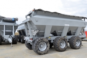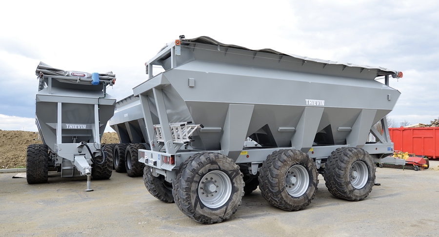 - Pour permettre l’acheminement du clinker depuis le quai de déchargement jusqu’à l’usine, Kercim a fait construire sur mesure par Thiévin huit remorques d’une capacité de 30 t chacune. Celles-ci sont attelées à des tracteurs agricoles.