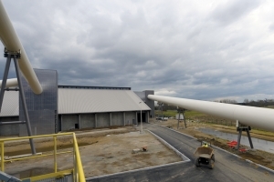 - En cours de finition, l’usine Kercim est installée sur un terrain de 5 ha. Elle-même représente une superficie couverte de 15 000 m2. Le site est distant de 1 450 m du quai de déchargement. Il est positionné dans la “trouée d’envol” de l’aéroport de Saint-Nazaire – Montoir, ce qui limite la hauteur des bâtiments à 25,50 m.