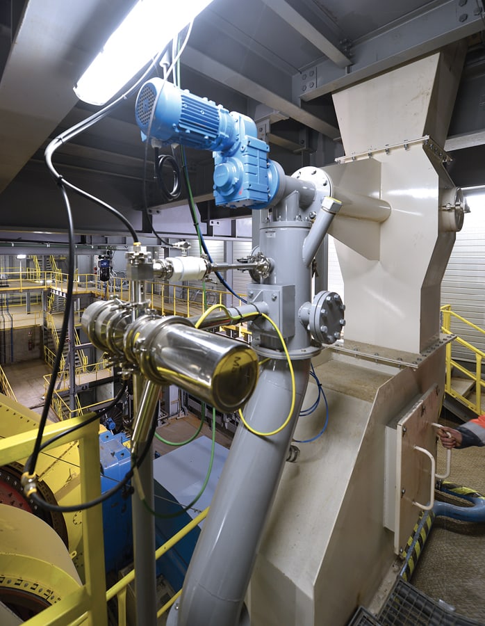 - Le broyeur est mis en mouvement à l’aide d’un moteur ABB d’une puissance installée de 4 400 kW, le plus puissant dans la zone d’implantation de l’usine Kercim.