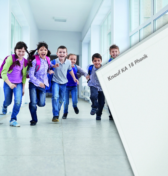Knauf KA 18 Phonik, système de cloisons distributives, permet d’obtenir un indice d’affaiblissement acoustique (Ra) de 53 dB avec un parement simple et un montant standard. Cette nouveau système est dédié aux bâtiments neufs d’habitation ou ERP, tels que locaux scolaires, hôpitaux, hôtels, Ehpad… ou en réhabilitation. Composé d’un parement simple peau de 18 mm d’épaisseur, Knauf KA 18 Phonik comprend deux plaques de plâtre cartonnées de 9 mm d’épaisseur (une plaque du dessous KS 9 à bords droits et une plaque apparente Diamant 9 à bords amincis) collées entres elles en usine. Cette solution présente une résistance accrue aux chocs et dégradations, idéale pour les écoles. Sa dureté autorise également la pose d’équipements type poignées de maintien, rampes, et autres solutions facilitant l’accessibilité et la mobilité des personnes.
