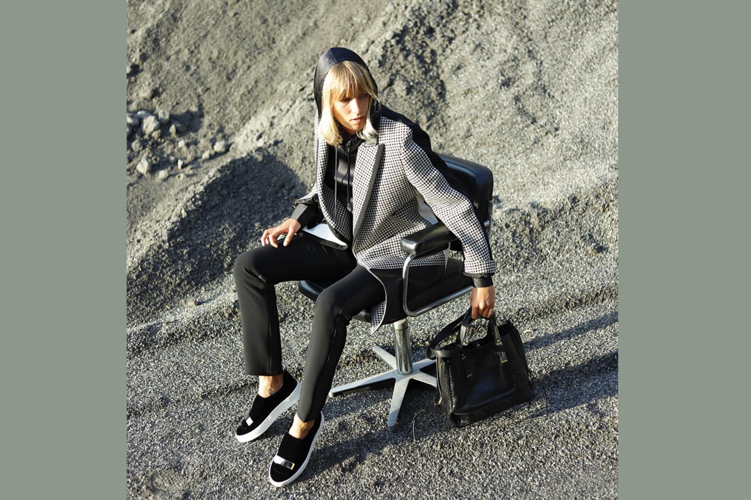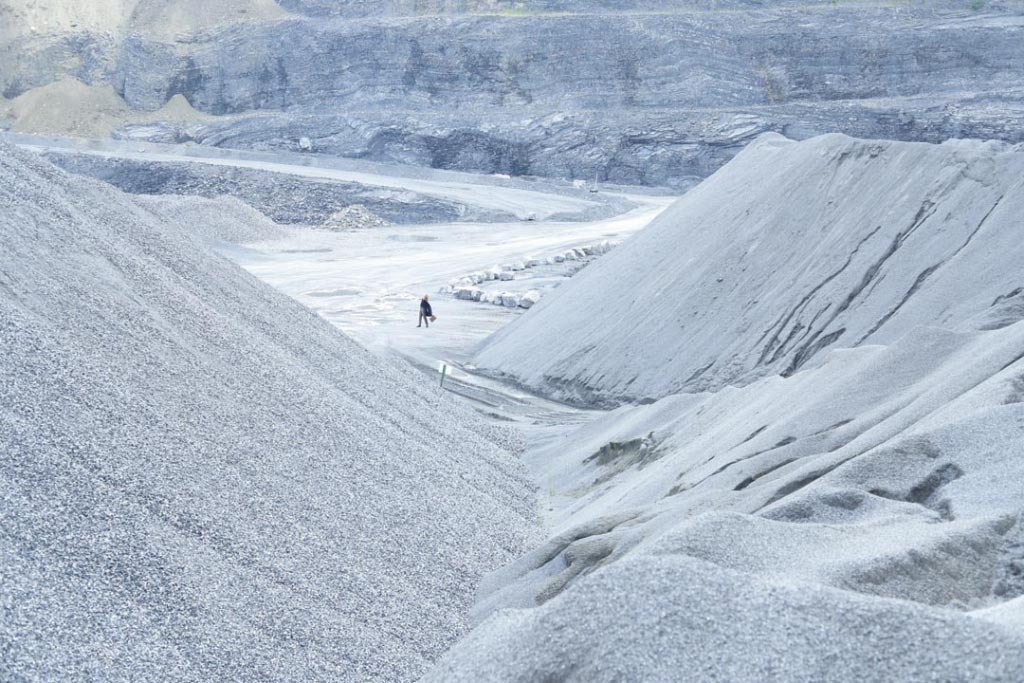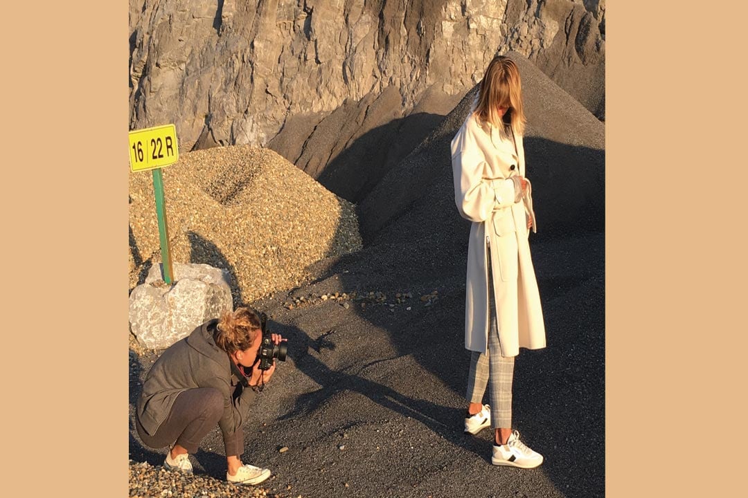 Quelque 14 ha, à ciel ouvert. Des teintes monochromes à perte de vue. Des fronts de taille immenses. Un site quasi-lunaire. Voilà dressé le décor du shooting mode qu’ont accueilli les carrières de La Sobaca (Société basque des carrières), filiale du groupe Etchart, à Urrugne (64), près de la frontière espagnole. Les machines ont presque disparu, laissant place à deux mannequins : Louise Ropagnol et Benoit Gonzalez, et à l’équipe composée de Margaux Alfuguren, photographe, et de Mélodie Peignaux, costumière et maquilleuse. Il aura fallu aux deux jeunes femmes une après-midi de repérage des lieux. Les zones ont été délimitées pour pallier tout risque d’accident.