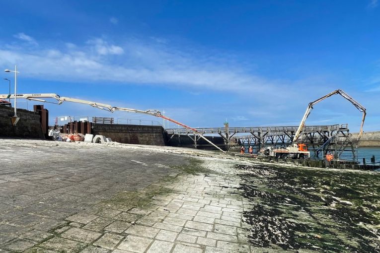 · Le coulage sous-marin des fondations des estacades du port de Fécamp. Projet porté par Lafarge Normandie.