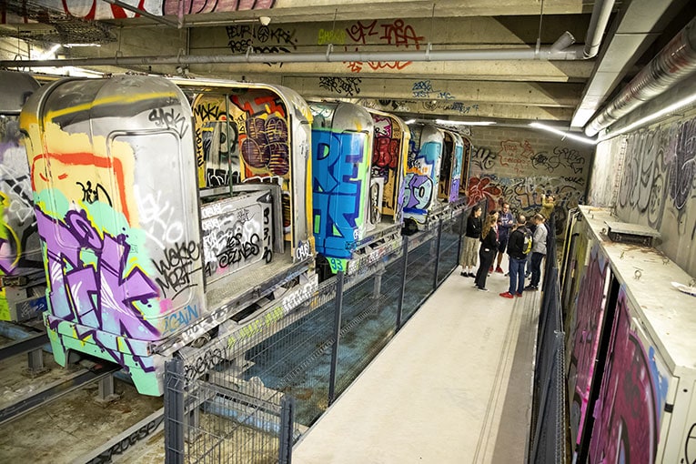 En avril dernier, l’équipe de Béton[s] le Magazine avait eu la chance de visiter les antres de métro SK. Mais qu’est-ce que cette curiosité ? D’une longueur de 518 m et doté de deux terminaux, ce mini-métro avait été construit en 1993. Il devait permettre de relier la gare RER du Mont d’Est au futur quartier d’affaires Maille Horizon, à l’Ouest de la ville. Mais ce dernier projet n’a jamais vu le jour, avalé par la crise immobilière du début des années 1990. Depuis, ce site était devenu l’aire de jeux des adeptes de l’urbex.