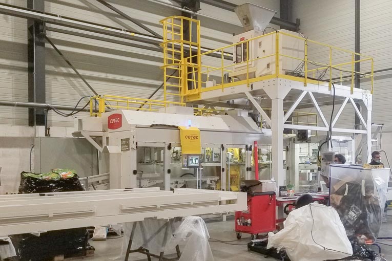 Parmi nos champs d’action, les sacs de 35 kg, qui s’intègrent tout à fait à notre scope. Tout comme les sacs de moins de 5 kg, parfaits pour la nourriture pour animaux. Toutefois, 2 kg reste notre limite basse car en deçà, il est nécessaire de changer de machine d’ensachage. De même, nous restons centrés sur les technologies de gaines ou de sacs formés. Pas de bobines donc en ligne de mire…