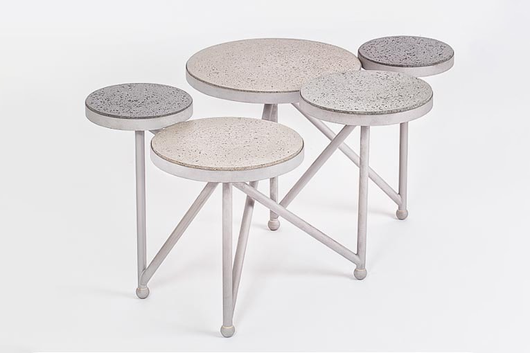 « Nous réalisons nous-mêmes les pièces moulées. Dans un premier temps, un soin particulier est apporté à la conception et à la fabrication des moules, qui sont fabriqués dans notre atelier de menuiserie. Cette étape est primordiale : dimensions précises, montages soignés, qualités de surfaces du moule et choix des matériaux utilisés. Autant de détails qui participent à la qualité du meuble à venir. » Après démoulage, chaque pièce de béton est finie à la main : ponçage et lustrage des arrêtes. « C’est cette dernière opération qui permet l’harmonie des lignes et la douceur du toucher. Enfin, nous réalisons la patine sur le béton, qui a pour fonction de le protéger contre les tâches. Nous en proposons trois, faites à la main. C’est la dernière touche qui fait du meuble une pièce unique », conclut Arnaud Deverre.