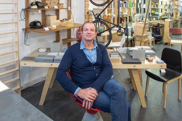 « A partir d’une matière brute, le béton, notre travail consiste à créer des éléments de design, aux formes inattendues et raffinées », annonce d’emblée Arnaud Deverre, co-fondateur de La Manufacture du Béton. Avec son associé, Antoine Courtiol, le Monsieur Béton de l’entreprise, ils ont fixé la barre haute. Ils se sont spécialisés dans les meubles “compliqués”, haut de gamme, coulés en une seule pièce, aux formes épurées et élégantes. Leur béton n’est autre qu’un Bfup de formulation maison, mis au point dans leur atelier de Brive-la-Gaillarde, en Corrèze. « La compacité de ce béton confère à nos produits une qualité de parement exceptionnelle, permettant toutes les extravagances de textures : béton mat, brillant, “fondu”, aspect bois, cuir, ardoise, peau de serpent ou carapace de tortue, bullé, lisse soyeux, avec inclusions… C’est aussi un atout supplémentaire pour la pérennité des créations en extérieur. »