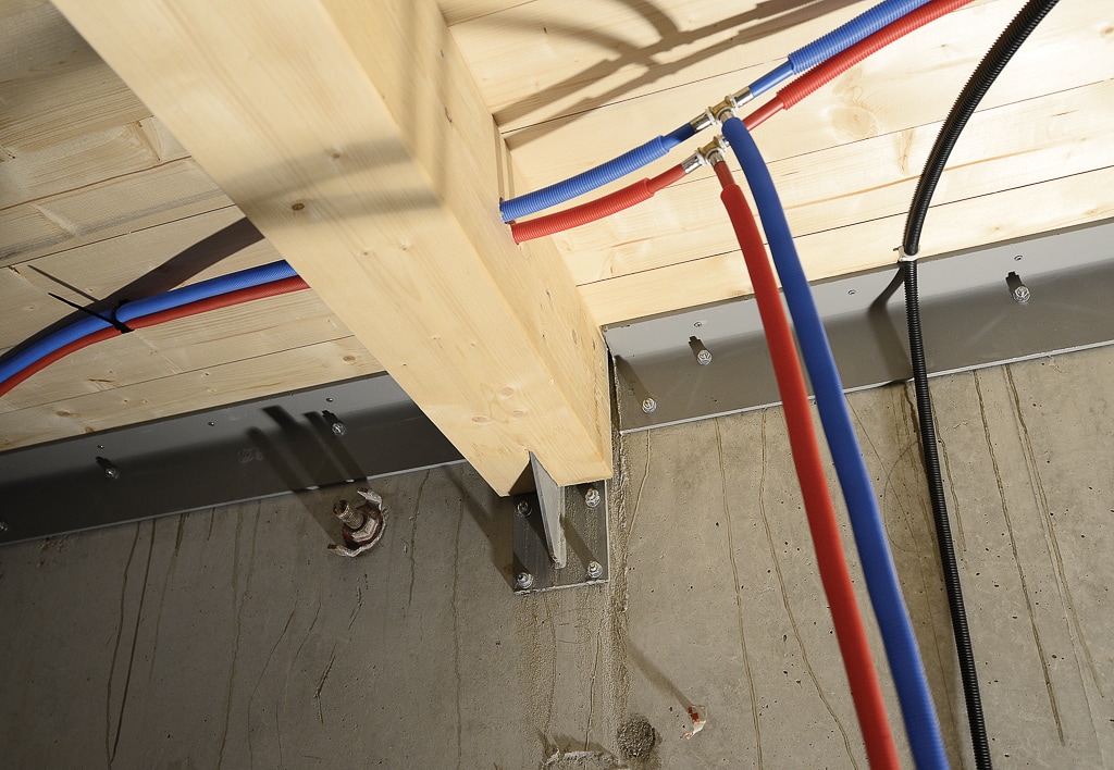 Bien entendu, les panneaux massifs ont été utilisés pour réaliser les voiles Ayant un rôle structurel, les panneaux bénéficient d’une isolation acoustique comme thermique, côté intérieur comme extérieur. De même, les planchers ne sont pas restés bruts. En sous-face, un faux plafond de 30 cm permet le passage des réseaux, tout en apportant l’isolation thermique et acoustique. Dessus, une couche d’isolant de 3 cm sert de support au système de chauffage par eau chaude et à la chape fluide l’enrobant.