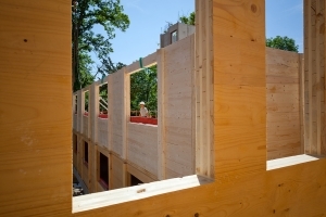 - Ayant un rôle structurel, les panneaux recevront une isolation acoustique comme thermique, côté intérieur comme extérieur. [©Laurent Blossier/Metsä Wood]
