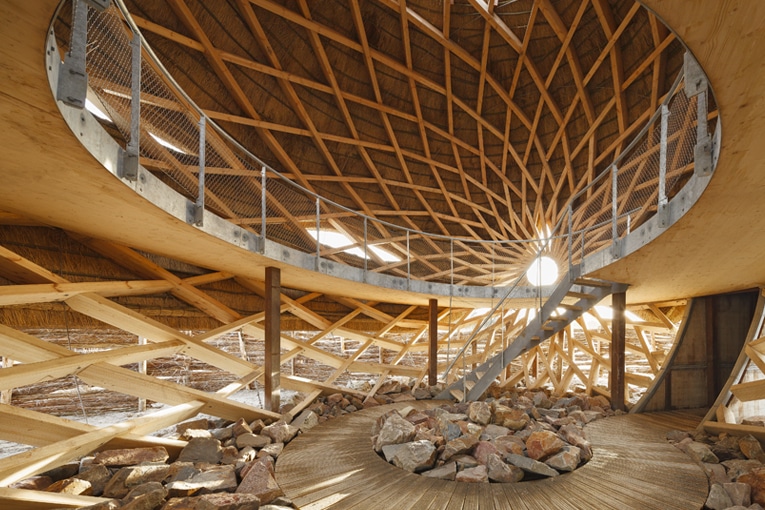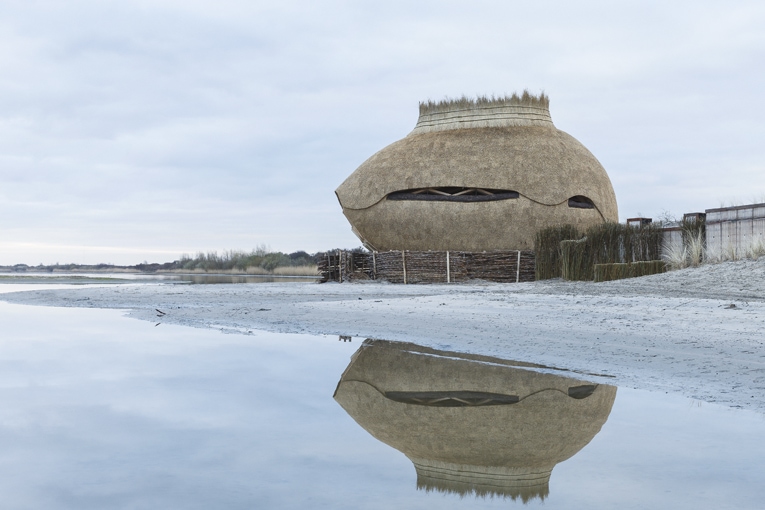 ![La partie basse de la structure, souvent inondée, est réalisée en bois Accoya, tandis que le haut est fabriqué en épicéa. Le toit est en chaumes de roseaux, prélevés sur place. [©Katja Effting]](https://old.acpresse.fr/wp-content/uploads/2020/02/2-Oeuf-en-bois.jpg)