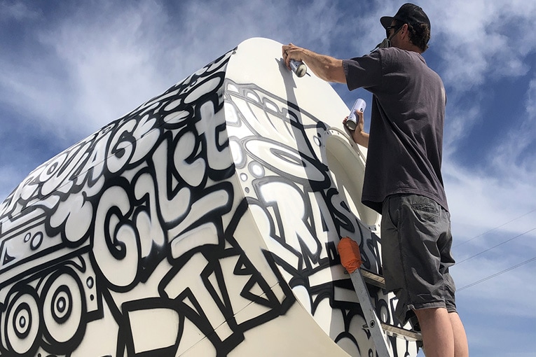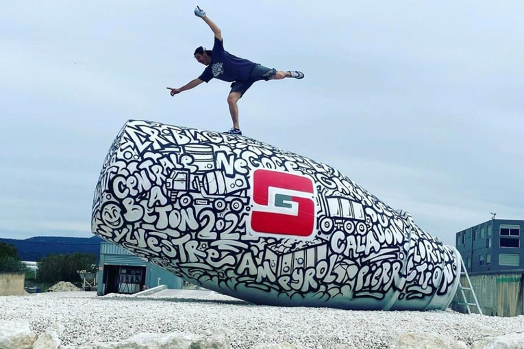 Béton, granulats, transport, recyclage, location de bennes et BTP sont les principales activités du groupe Sylvestre. Le tout réuni sur 6 sites, dont le siège est à Maubec, dans le Vaucluse, en cours de réaménagement A cette occasion, Frédéric Dubois, chargé de communication du groupe, a donné carte blanche à Rémi Julienne, dit “Namek”, pour graffer une boule de toupie posée sur un rond-point nouvellement créé. « Nous privilégions le travail d’artistes locaux. Namek est un tatoueur et un graffeur de Coustellet, à quelques kilomètres de notre site. Nous lui avons confié une boule de toupie, afin qu’il la recycle et la valorise de façon artistique. Nous voulions une image urbaine et jeune. Nous lui avons confié une liste de mots : Granulats, Centrale, Groupe Sylvestre… pour qu’il les tagge d’une manière originale et ludique. Et c’est très réussi », s’enthousiasme Frédéric Dubois.