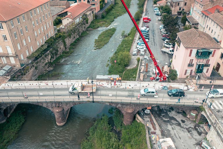 Gabriel Durandeau insiste surtout sur l’excellence de la coopération inter-entreprises : « Ce chantier a été rendu possible grâce à une relation de confiance entre Auglans, Delta Préfabrication et Lafarge. On a travaillé ensemble, bien au-delà du schéma classique client-fournisseur. Cette synergie a permis de valider les hypothèses techniques rapidement et de livrer des pièces d’une qualité exceptionnelle ». C’est le conducteur de travaux, Hugues Marty, qui pilotait le chantier d’une main de maître. A l’issue d’une phase de préfabrication de 7 semaines, les nouvelles pièces n’ont ajouté aucun poids à l’ouvrage. La qualité des parements, obtenue sans retouches, témoigne du savoir-faire industriel mobilisé. « Delta Préfabrication a utilisé une méthode de prduction qui garantit des parements parfaits sur les deux faces. Ce qui est très rare en Bfup. Je me sers désormais de ce chantier comme référence technique dans d’autres projets », indique Gabriel Durandeau. Les travaux de finition ont compris la pose d’un enrobé à chaud sur la chaussée, des garde-corps, ainsi qu’une résine anti-dérapante sur les trottoirs et la piste cyclable, assurant sécurité et durabilité. « Un chantier où l’innovation et la rigueur d’exécution ont permis de rendre à Sainte-Affrique un ouvrage à la fois moderne, sûr et durable. »