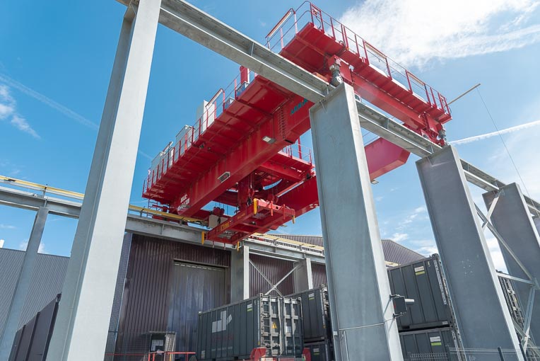 L’usine Cem’In’Eu de Portes-lès-Valence est basée sur le même fonctionnement que celle de Tonneins. La matière première principale – à savoir, le clinker – est acheminée depuis la zone portuaire de Fos-sur-Mer, à partir du terminal Cem’In’Log. Rhône Ciments profite en plus d’une double logistique. Tout d’abord, la voie ferrée, qui arrive jusqu’u cœur de l’usine. A raison de deux trains pas semaine depuis le mois de septembre dernier, chargés de conteneurs 20’’ transportant chacun 32,5 t de clinker, pour un poids total de 1 750 t. L’autre moyen de transport est la voie d’eau, c’est-à-dire par barges de 1 500 t au maximum remontant le Rhône. Deux à quatre unités font le voyage tous les mois. Les convois fluviaux arrivent à l’entrée de Portes-lès-Valence, à 500 m de l’usine… Ce dernier saut de puce se fait par camions.