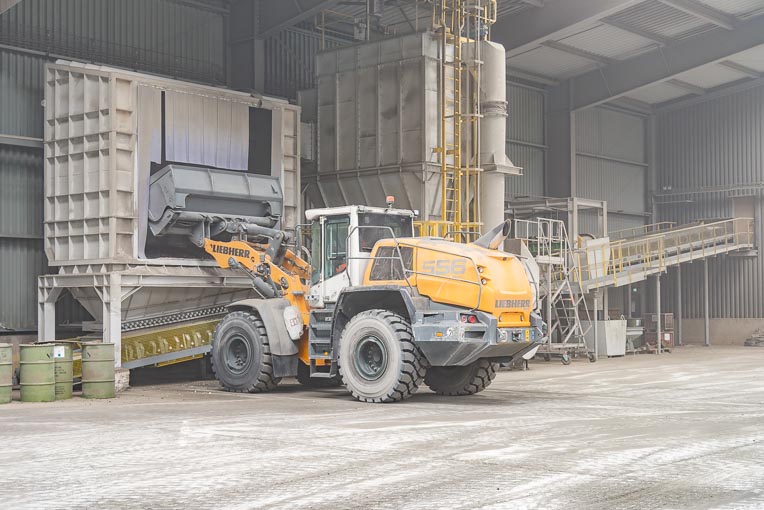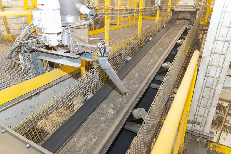 Les produits finis sont stockés au sein de six silos en acier d’un contenant unitaire de 600 t, dont quatre adaptés au vrac et aux sacs. L’atelier de conditionnement des sacs a été configuré par Haver & Boecker dont l’ensacheuse Adams à dix becs constitue l’outil central. Un ensemble de palettisage/houssage complète ce dispositif. Vingt-deux personnes composent les forces vives de l’usine, réparties en quatre équipes intervenant en permanence environ 6 j/7.