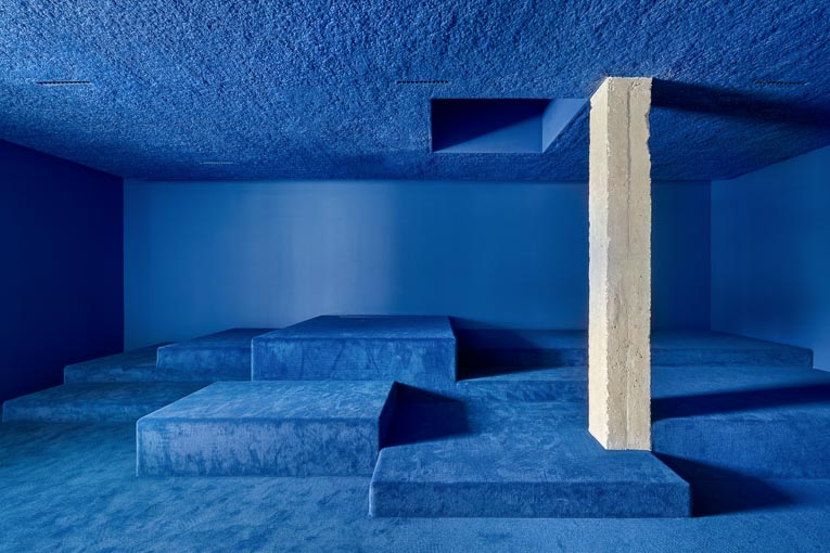 De même, Dominique Coulon a fait le choix de la mise en scène de certaines pièces en béton déjà existantes. « Notre volonté était de transformer les lieux sans casser ou déconstruire. Nous n’avons quasiment pas touché aux bâtiments, qui avaient été construits à des époques différentes et sans liens architecturaux. Nous avons donc pensé notre proposition en tenant compte de l’existant. Par exemple, dans l’espace “L’heure du conte”, des gradins bleus ont été scénarisés autour d’un poteau déjà en place. Malgré le fait que celui-ci n’avait pas forcément une qualité de mise en œuvre qui justifiait de le laisser brut. »