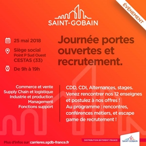 Le 25 mai prochain, Saint-Gobain Distribution France propose une journée consacrée à la découverte de ses différents métiers et univers. Pour l’occasion, l’entreprise organise une session de recrutement, pour le moins, originale.