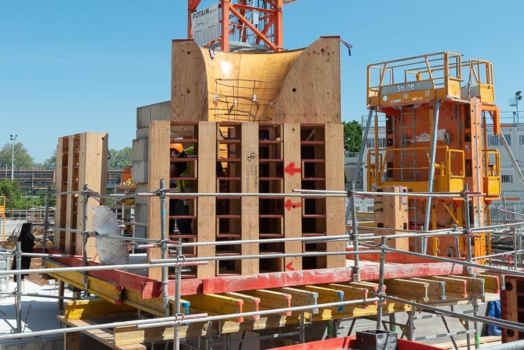 « Chaque coulage nécessite entre 7 h et 9 h de travail et la mise en place de 50 à 60 m3 de bétons. Coulés à une vitesse de montée dans le coffrage limitée à 1,80 m/h », explique Raul De Sousa, maître-compagnon au sein de Demathieu Bard Bâtiment Ile-de-France.