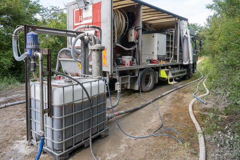 Le chantier étant tout en longueur, une organisation particulière a dû être mise en place. « Nous avons installé notre usine de production de coulis à l’une des extrémités du la zone d’intervention, détaille Stéphane Bouix, chef de chantier. Cette unité intègre une trémie à ciment de 40 m3 de capacité, approvisionnée à l’aide d’une citerne. » C’est un ciment Lafarge de type CEM II qui a été choisi pour cette opération. Compte tenu de l’isolement du chantier, un groupe électrogène assure l’alimentation en électricité de l’ensemble des installations Stonart. Celles-ci comptent aussi une seconde unité de production, mobile, positionnée au plus près des points d’injection, afin de générer l’Aérolithys en tant que tel. « Avec la distance à pomper, il n’était pas possible de préparer la mousse minérale dans l’unité primaire, au risque de voir arriver en bout de tuyau un produit totalement essoré », souligne Stéphane Bouix.