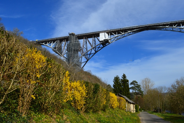 SNCF Réseau a mené ce chantier, en intervenant sur les éléments métalliques, et en procédant au décapage et au renouvellement complet de la peinture. Un exploit quand on sait que l’ouvrage culmine à 116 m de hauteur au-dessus du Viaur. Le viaduc est inscrit au titre des Monuments historiques depuis 1984. Son classement doit intervenir en 2021-2022. En 2000, c’est Spie Batignolles qui a construit le viaduc autoroutier en béton qui franchit la vallée du Viaur quelques centaines de mètres en aval.