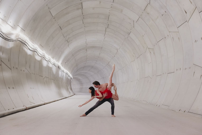 « J’aime le contraste saisissant entre la dureté du béton, son graphisme épuré et la grâce de la danse. Ce tunnel était parfait pour cela… Mon objectif est d’amener de la légèreté et de l’élégance dans un environnement dur, froid, industriel et bétonné ! Montrer qu’un chantier peut être photogénique. Avec les deux danseuses et le danseur professionnels, nous sommes restés dans cet environnement poussiéreux et bruyant pendant 3 h. J’ai pris quelque 700 photos pour 80 retenues. Le lieu était sombre, il fallait bien cela pour bien rendre parfaitement le mouvement de la danse. » Yanis Ourabah sublime ainsi ce prolongement de la ligne B du métro de Lyon.